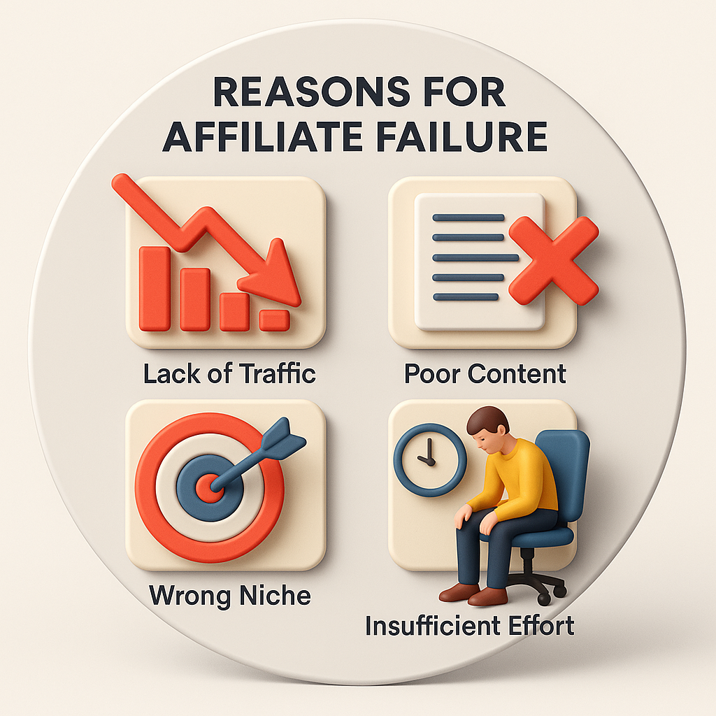 Affiliates commonly fail because they underestimate the effort needed to build trust, traffic, and consistent value. Many jump in expecting quick money, but affiliate marketing works only when you deliver quality content, target the right audience, and stay consistent. Choosing the wrong niche, relying on random link-sharing, and giving up too early are major reasons for failure. Successful affiliate marketing requires patience, strategy, and continuous learning—without these, most beginners lose momentum before results appear.